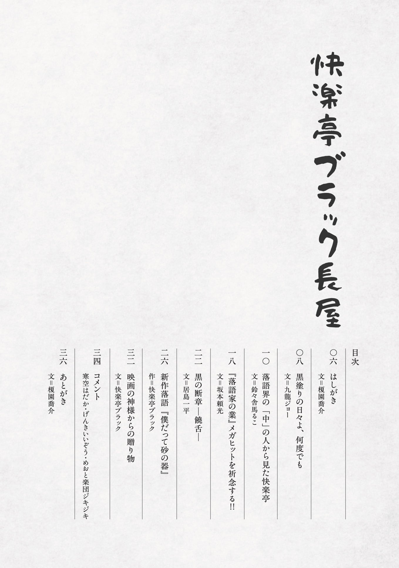 表紙:カラー/本文:モノクロ34p/A5無線綴じ冊子 主演・快楽亭ブラックを始め、語り・坂本頼光方々が名文を寄稿。 ブラックが生い立ちを語るレアな新作落語も収録。